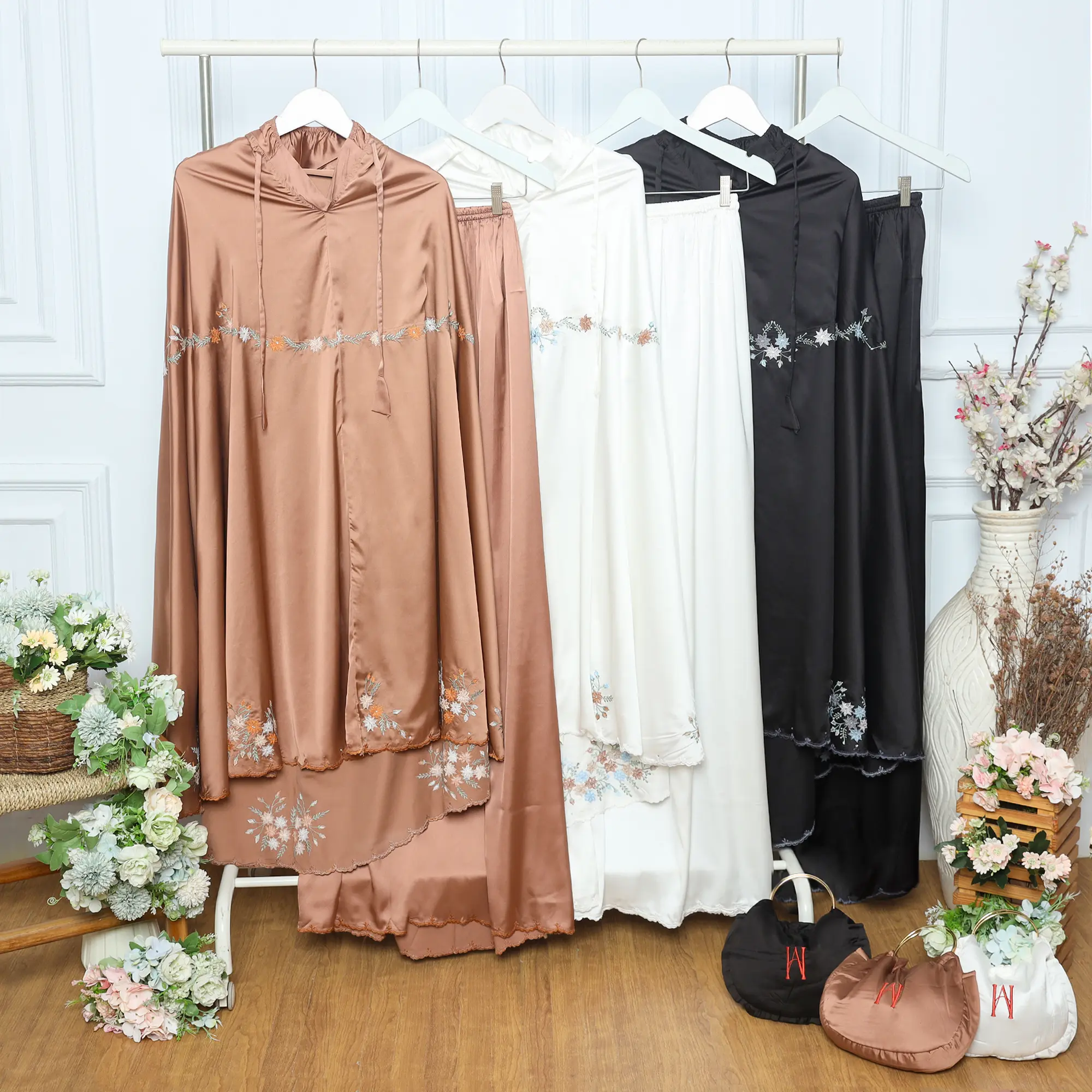 Mukena berkualitas premium dari Hafita ini menggunakan motif bordir bunga mawar dengan